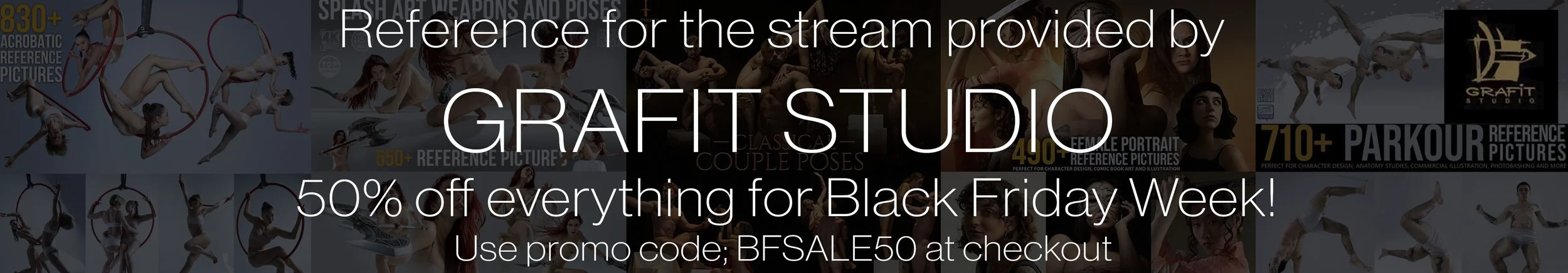 With over one hundred and ninety streams over the past two years we’ve grown into one of the largest online figure drawing community’s! During each session we draw from the pre selected reference and I discuss my thought process throughout. From purely Gesture (faster pose) sessions to longer form sessions, draped and multiple figure poses, there’s usually something for everyone.